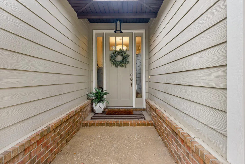 Charming Craftsman-style cottage in a quaint wooded neighborhood with low HOA fees. Located on a quiet cul-de-sac next to the community pool and mailboxes. Features an open, light-filled floor plan, split bedrooms for added privacy, and porcelain tile throughout.The backyard is a delight with azaleas, live oaks, maples, blueberry bushes, and small citrus trees. A pizza oven, fire pit, and partially fenced yard are included.Additional highlights: 10' ceilings in the living room, 9' ceilings in the bedrooms, wood wainscoting in the bathroom, and removable wallpaper in the hallway. Close to grocery stores, parks, the library, and restaurants.